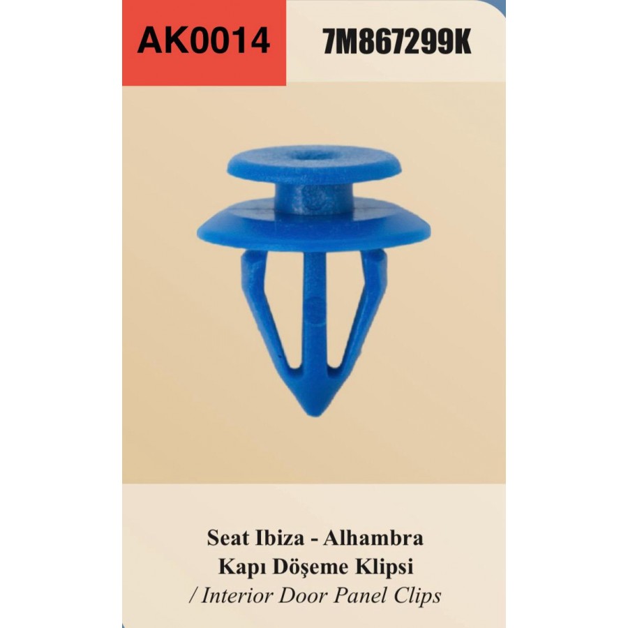 Seat Ibiza ve Seat Alhambra uyumlu kapı döşeme klipsi, araç kapı iç döşemesinin gövdeye sağlam ve titreşimsiz şekilde sabitlenmesini sağlar. Kırılan, gevşeyen veya kaybolan orijinal klipslerin yerine birebir uyumlu olarak kullanılabilir.